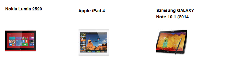 Sfida tra Tablet: Nokia Lumia 2520 vs Apple iPad 4 vs Samsung GALAXY Note 10.1 (2014 Edition)