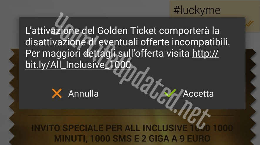 - Quando avete ricevuto il coupon, cliccate sul tagliando dorato e cliccate su Accetta per procedere con l'attivazione della promozione.