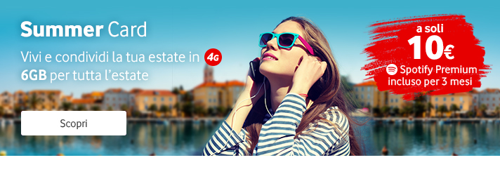 - Summer Card: 2GB al mese per 3 mesi al costo di 10 euro in totale ed inclusi 3 mesi di Spotify Premium.