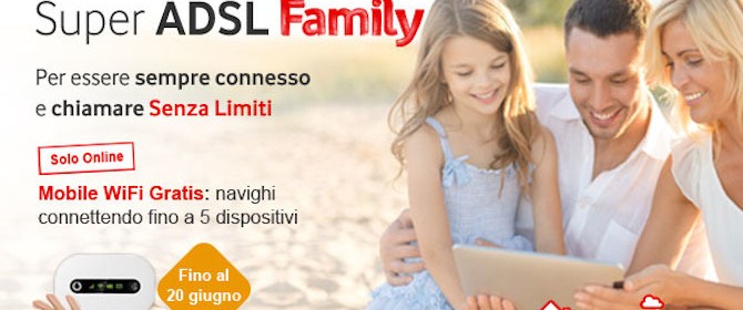 Poi troviamo l'offerta Vodafone Super ADSL Family che permette di avere tutto senza limiti, a soli 32 euro al mese per 12 mesi, contro i 37 euro, per avere tutto illimitato, chiamate senza scatto alla risposta.