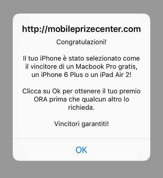 Eliminare messaggio/virus “Congratulazioni hai vinto” su iPhone
