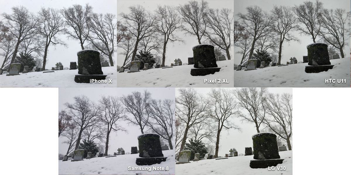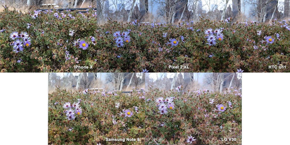 Anche parlando di fotocamera frontale il Pixel di Google batte iPhone X. La differenza è minima, ma il Pixel 2 XL ha offerto foto più colorate, con colori più bilanciati, credibili e riprodotti in modo più accurato. iPhone X scatta comunque fantastici selfie anche in condizioni di bassa luce. HTC U11 offre buoni selfie di giorni, pessimi di notte. Quelli di LG V30 sono pessimi sempre a causa della fotocamera anteriore da soli 5MP. Non male Note 8, comunque inferiore ai primi 2.