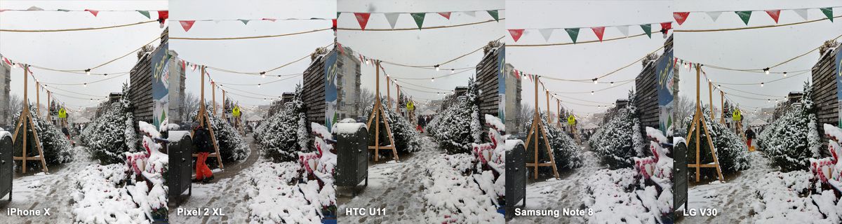 Da notare comunque che la redazione di The Verge segnala che, negli scatti alla luce del sole, iPhone X e Google Pixel XL 2 hanno scattato foto praticamente identiche, piene di dettagli e davvero splendide. Subito dietro troviamo HTC U11, mentre un pò distaccati ci sono Note 8 e in fondo LG V30. In generale iPhone X scatta foto con esposizione e colori perfetti e una qualità molto elevata, mentre anche di giorno LG V30 mostra qualche problema con i colori e la qualità dell'immagine. Note 8 non delude mai, ma non fa mai gridare al miracolo. I migliori sono sempre il Pixel e iPhone, ma il Pixel vince grazie al suo HDR+ che gestisce luci e colori in modo impeccabile.