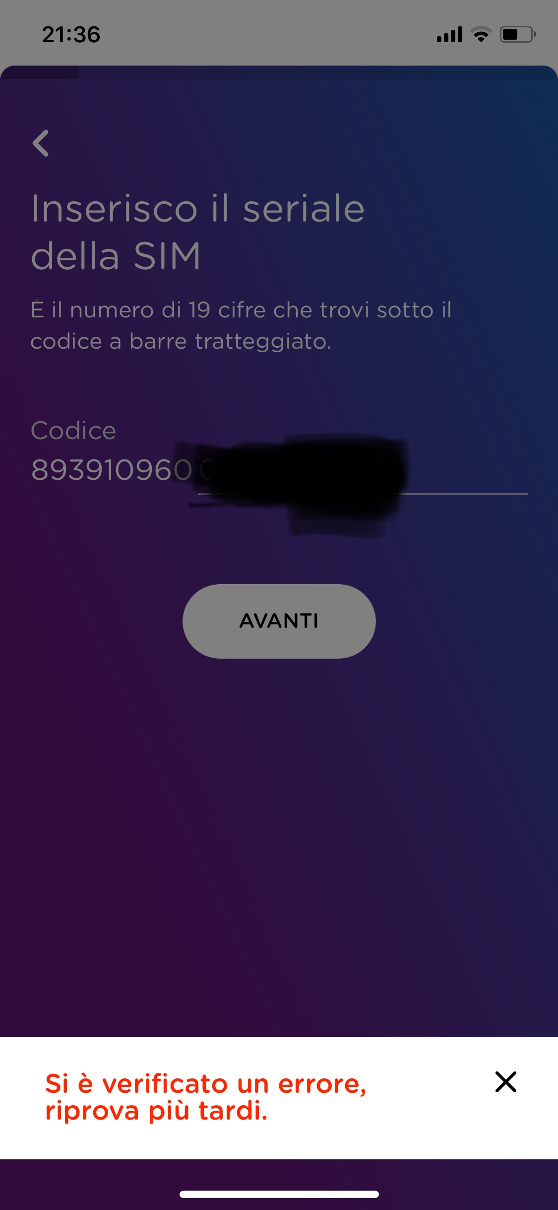 Non riesco ad attivare la mia SIM Ho. Mobile. "Si è verificato un errore, riprova più tardi" durante attivazione SIM Ho. Mobile