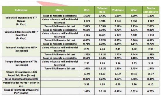 Per quanto riguarda la velocità di navigazione, Vodafone è prima con 2,45 secondi tempo di caricamento di una pagina standard, davanti a TIM con 2,74 secondi, 3 Italia con 2,79 secondi e Wind ultima con 3,62 secondi ma il successo di Vodafone è dato da una tecnica di compressione delle pagine molto efficiente.