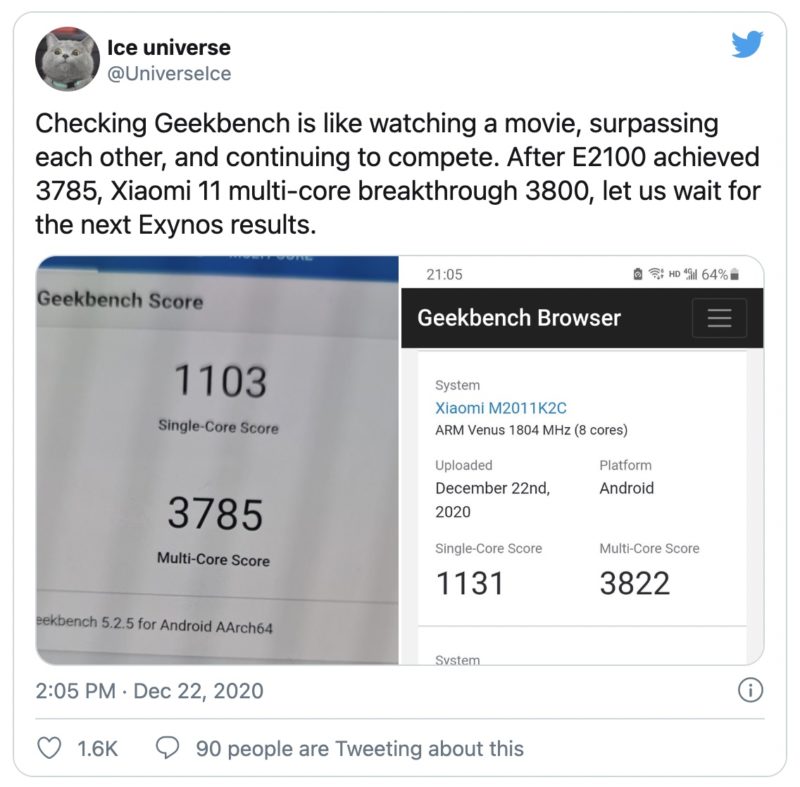 In ogni modo, i primi test che hanno messo a confronto Xiaomi Mi 11 con SnapDragon 888 e Galaxy S21 con Exynos 2100 mostrano punteggi praticamente identici: