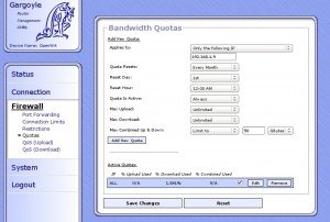 Per impostare il limite basta recarvi in Firewall -> Quotas. Potete applicare un limite al download, all'upload o entrambi e scegliere quando resettare il contatore!