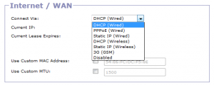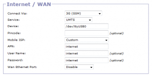 Collegate la chiavetta prima di accendere il router e recatevi in Connection –» Basic –» Internet/WAN –» Connect. Selezionate 3G ed inserite i parametri: