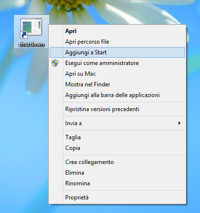Ecco comparire il collegamento sul desktop, per pinnare il collegamento anche sulla start screen basta cliccare con il tasto destro sul collegamento sul desktop e scegliere "Aggiungi a Start"