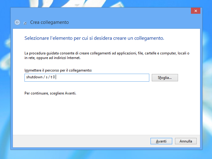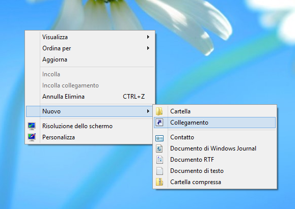 Creiamo un nuovo collegamento sul desktop facendo click con il tasto destro