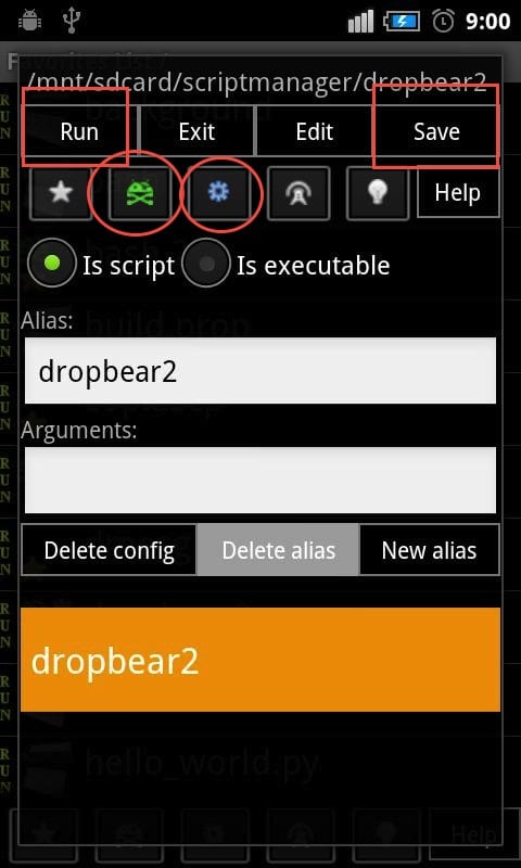 Ora cliccate sul file e si avvierà lo script manager. Pra dovete cliccare sull'icona del super user e su boot, potete visualizzare quali sono le icone da cliccare sull'immagine seguente identificate dai cerchi rossi.