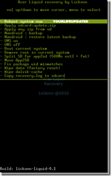 Acer Liquid: ecco la recovery Lickonn 0.2