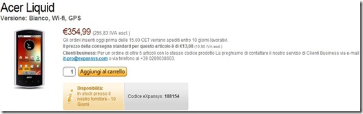 Acer Liquid: su expansys a 355€