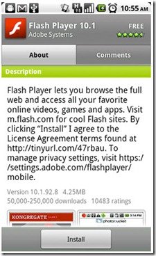 Come ho annunciato nella giornata di ieri ai miei followers su Twitter, Adobe ha finalmente rilasciato sul Market la versione finale del suo FlashPlayer 10.1 per sistema operativo Android.