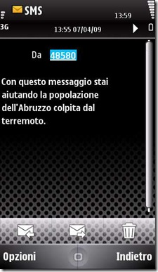 Basta infatti inviare un sms, anche vuoto, al numero 48580, attraverso il nostro telefono cellulare. In questo modo potremo donare 1€. Da rete fissa Telecom Italia, invece, sempre nello stesso modo potremo inviare una donazione di 2€. Se inviate un SMS, ne riceverete uno identico a quello che ho ricevuto io poco fa per ringraziarvi della vostra collaborazione.