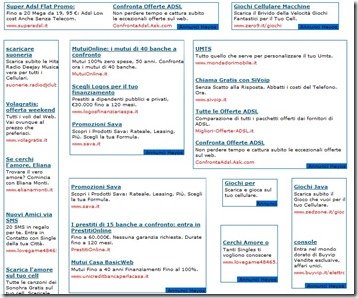 - Annunci testuali contestuali, in collaborazione con Yahoo! Search Marketing