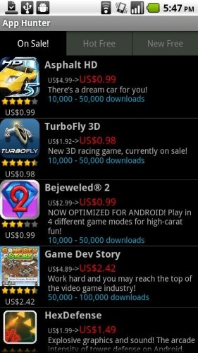 Proprio per aiutarci in questa missione è stato sviluppato App Hunter, un utilissimo software in grado di segnalarci tutti i giochi ed i programmi scontati presenti sul Market di Android.