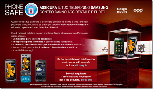 La polizza PhoneSafe, attivabile direttamente dal sito www.samsungmobile.it,