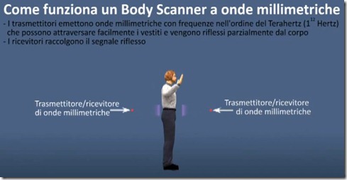 Non voglio assolutamente difendere o accusare questi dispositivi, ma solo mettervi a conoscenza di come funzionano e di quello che fanno quando scannerizzano il nostro corpo.