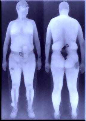 Un body scanner è uno strumento che, letteralmente, spoglia il nostro corpo e lo analizza da capo a piedi. Come vedete dalle immagini, il dispositivo riesce a toglierci i vestiti e ad analizzarci a livello della pelle, evidenziando anche i tanto “scomodi” rotoli di ciccia.