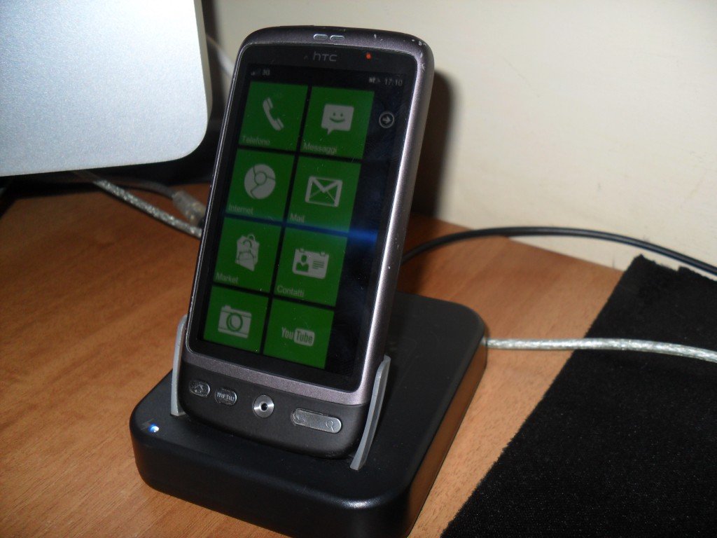 E' una vera e propria Docking Station, che ci permetterà di ricaricare il nostro dispositivo in modo diverso dal solito; Nella confezione era presente anche un cavetto usb con presa Mini-Usb e standard Usb, da attaccare rispettivamente a Dock ed al classico alimentatore dato in dotazione al Desire. Naturalmente può essere attaccata al PC/Mac tramite porta Usb, in modo da poterlo ricaricare e/o trasferire i dati.