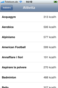 Altra funzione utile consite nel mostrarci quante calorie bruciamo facendo diverse attività,potremo paragonare il consumo di calorie di 77 tipi di sport (per esempio hockey, pallamano o bowling) e di 35 attività quotidiane (per esempio guidare la macchina, stirare, spazzolare la neve).
