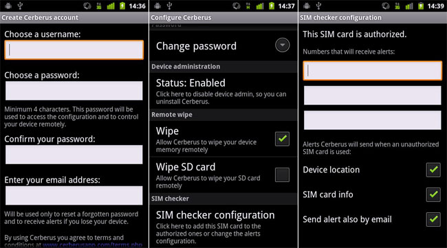 Come è possibile controllare il telefono? Semplice, tramite il sito Cerberusapp.com o tramite comandi predefiniti inviati con un semplice SMS. Inoltre è anche possibile, in caso di cambio SIM, ricevere automaticamente un avviso nel quale ci verranno inviate anche preziose informazioni sul ladro in questione, utili per ritrovare il telefono e pestare per bene il ladro in questione.