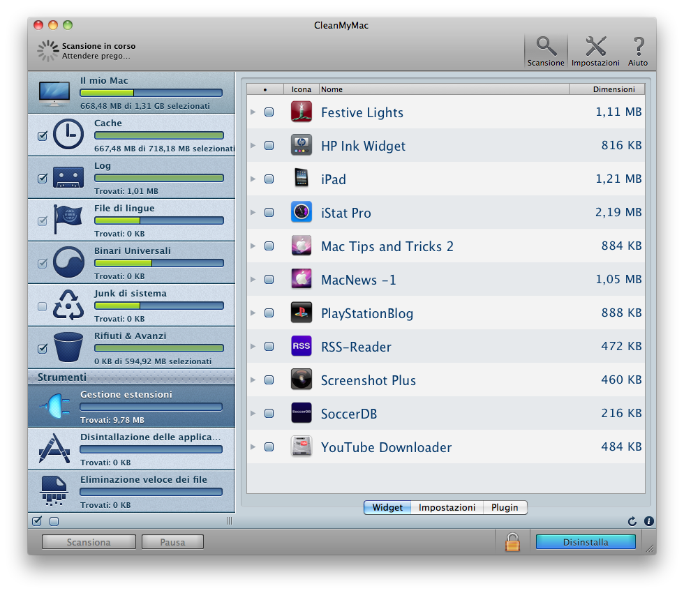 - Gestione delle estensioni: questa features ci permette di gestire Widget per dashboard e estensioni varie installate sul nostro Mac.