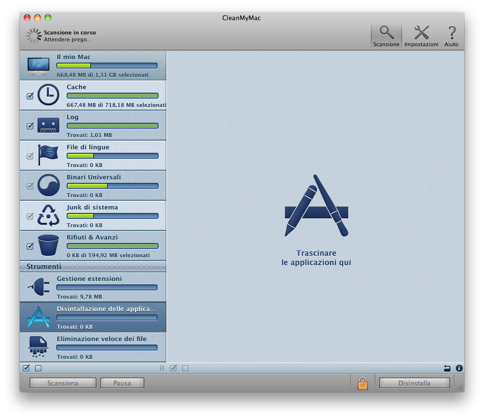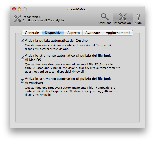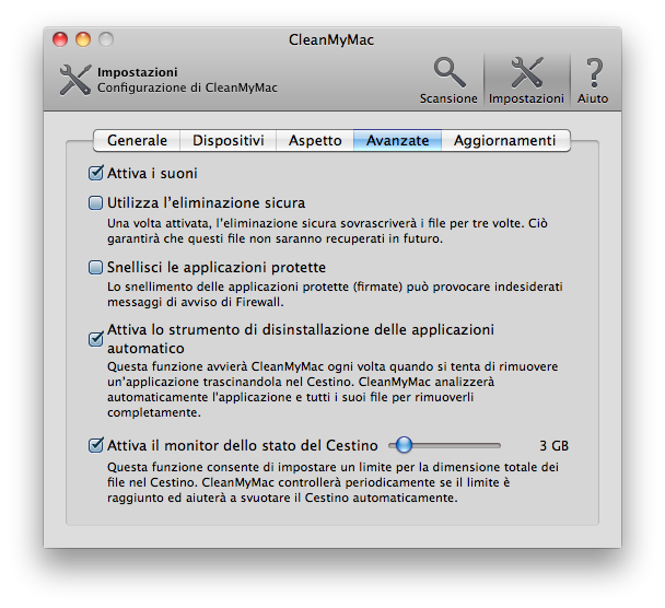 Clean My Mac inoltre offre una grande possibilità di personalizzare il processo decidendo cosa trovare e cosa eliminare.