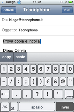 Una delle principali mancanze che hanno evidenziato fino ad oggi i possessori iPhone 3G è stata l'assenza del copia-incolla sul gioiellino di casa Apple.