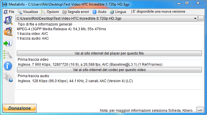 Queste sono le informazioni tecniche sul file video: