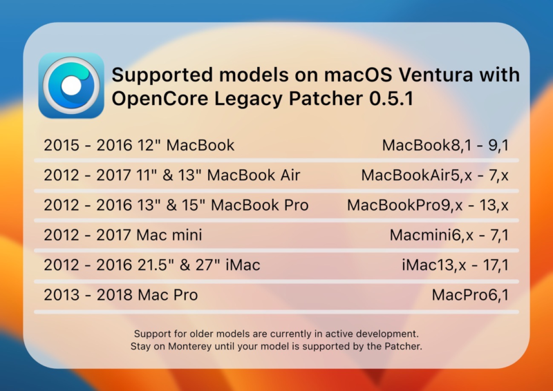 Il programma viene costantemente aggiornato e, in particolare, gli sviluppatori di OCLP hanno appena rilasciato la versione 0.5.1 che consente di installare macOS Ventura sui computer Apple non compatibili.