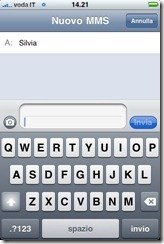 Andando ad inserire un qualsiasi carattere nel campo “Oggetto”, anche una semplice lettera o uno spazio bianco, invece, potrete inviare un normale MMS (anche in questo caso notate la scritta nella parte alta del display).
