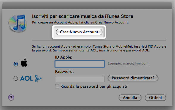 - Dopo che hai attivato il link, iTunes ti chiede di effettuare l'accesso con il tuo nome account e la password.