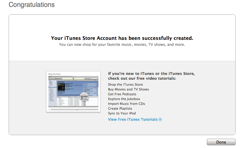 - Appare uno schermo che riporta "Verifica il tuo account". Fai clic su Fine e verifica di aver ricevuto un messaggio e-mail di conferma da "iTunes Store".