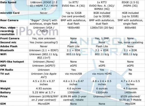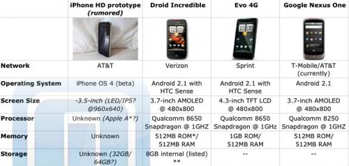 Confronto: iPhone 4G, Nexus One, Droid Incredible, Evo 4G