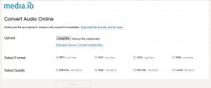 Dopo una breve ricerca ho scoperto Media.Io, un potentissimo servizio web in grado di convertire online qualsiasi tipo di file audio.