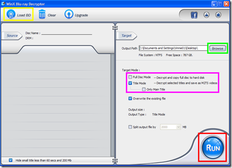 - Title Mode (per copiare soltanto uno o più specifici titoli/settori del Blu-ray).