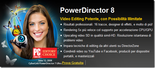 Più potente, e ancora più veloce, CyberLink PowerDirector 8 offre ancora più funzionii per migliorie ed editing video, strumenti per creazioni personalizzate, e tracce di timelime più numerose per permetterti di creare fantastici filmati. Puoi anche mettere il turbo ai tuoi progetti scaricando uno degli oltre 13.000 effetti gratuiti disponibili su DirectorZone da altri utenti di PowerDirector.