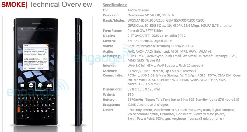 Anche questo basato su OS Android, ma in questo caso la versione dell’OS è la 2.2 Froyo, che arriverà a breve sul mercato per tutti gli smartphone.