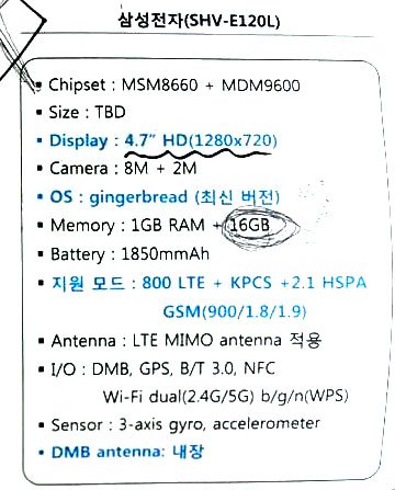 Ecco il Samsung SHV-E120L: display da 4.7' 720p, processore Qualcomm 1.5 GHz dual core