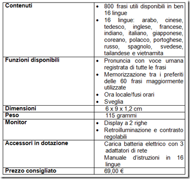 Ogni frase viene ripetuta nella pronuncia corretta da una voce umana registrata, per facilitare al massimo la comunicazione.