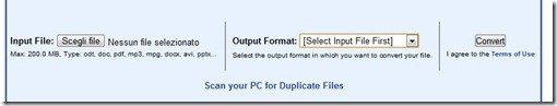 Tutto quello che dovremo fare consisterà nel caricare il nostro documento o file da convertire e selezionare successivamente il formato di output.