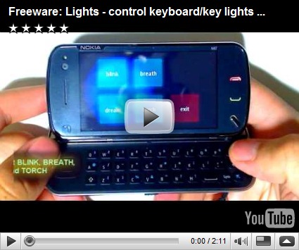 “Freeware Lights” è un programma gratuito, scaricabile dall’Ovi Store, che vi permette di regolare tutte le luci presenti sul vostro dispositivo. E’ compatibile con tutti i sistemi operativo Symbian S...