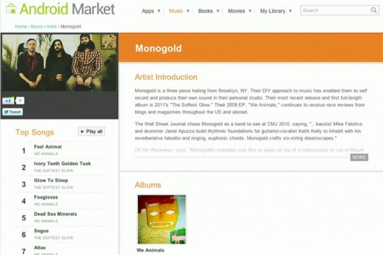 Anche in questo caso, come annunciato in precedenza, Google Music Store permetterà agli utenti di acquistare e scaricare migliaia di brani MP3, proprio come fa iTunes di Apple. Prima di acquistare i brani, però, gli utenti potranno ascoltarli per 90 secondi!