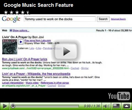 Come potete vedere, sarà possibile cercare le nostre canzoni in vari modi: tramite artista, album o addirittura scrivendo parti del testo della canzone che ci interessa. Fenomenale, come ogni altra idea di Google.