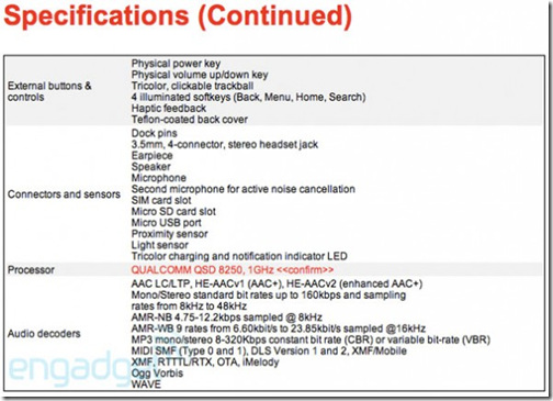 Pochi minuti fa sono comparse in rete quelle che, almeno a prima vista, sembrano le specifiche tecniche ufficiali del nuovissimo Google Nexus One, lo smartphone nato dalla collaborazione tra Google ed HTC che ha attirato l’attenzione di tutto il mondo in pochi giorni.