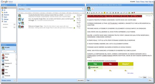 Per il momento, possiamo immaginare Wave come una evoluzione di Gmail, che permette di lavorare in tempo reale con più contatti.