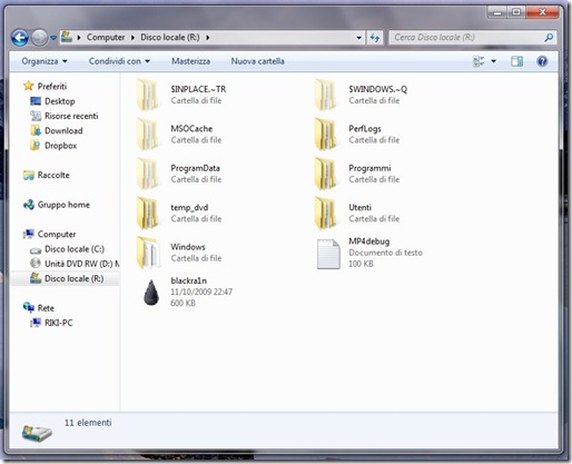 Ora, posizionate il programma blackra1n scaricato in precedenza nella directory principale del disco fisso in cui avete installato Windows. Nel mio caso è R, ma solitamente è C.