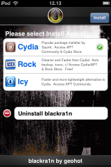 Si aprirà una schermata che vi chiederà quali pacchetti installare: cliccate su Cydia e poi su Install ed attendete il completamento delle operazioni.